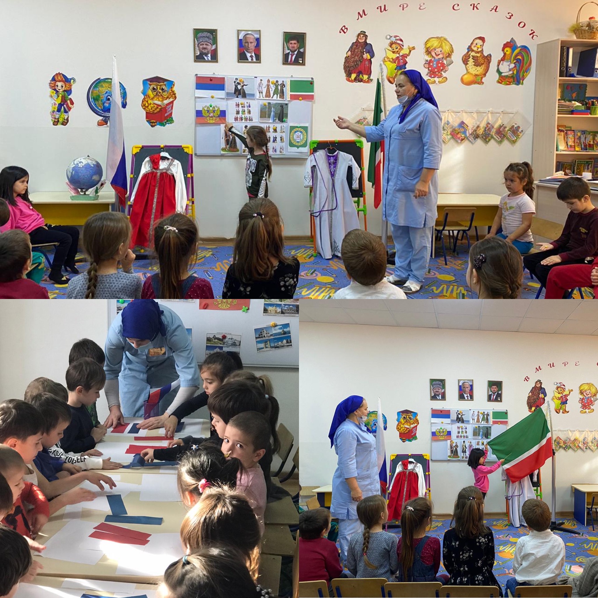 03.11.2020Во все времена россияне любили свою Родину: слагали о ней песни, пословицы и стихи, во имя родной стороны совершали подвиги. 4 ноября вся наша страна отмечает День народного единства. Дошкольники детского сада на занятии узнали, что за праздник День народного единства, узнали кто такие Кузьма Минин и Дмитрий Пожарский, что они сделали для России. Посмотрели презентацию об истории создания памятника на Красной площади. Детям предлагались различные задания: подобрать красивые картинки к слову Родина, нарисовать флаг России и т.д. Малыши играли в игру «Защитники», целью которой является воспитание чувства уважения к защитникам нашей Родины, желание стать ее защитником. В конце занятия ребята с воспитателем сделали коллективную аппликацию «Мы едины».