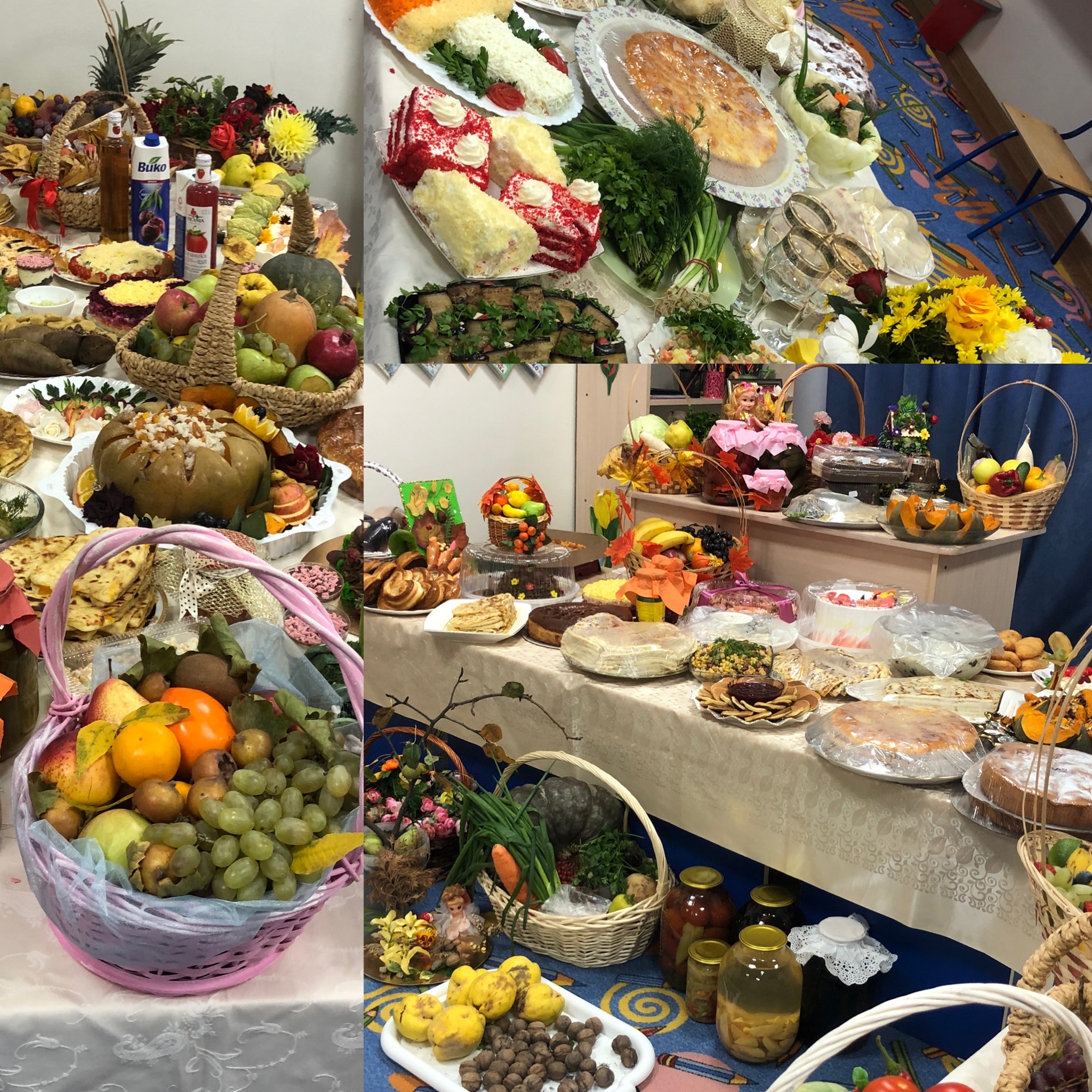 В этом году совместными усилиями детей, родителей и педагогов была организована выставка "Осеннее чудо", экспонатами которой стали не только поделки из овощей и фруктов, но и различные кулинарные шедевры.