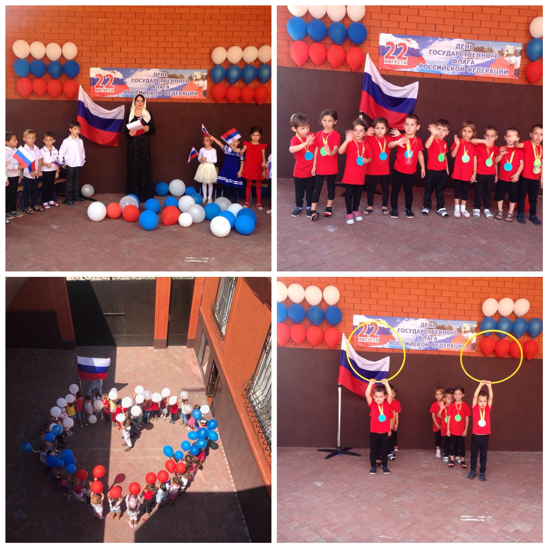 Ежегодно 22 августа в России отмечается День Государственного флага Российской Федерации. В этот день в нашем саду прошел праздник, посвященный Дню Российского флага. Детям рассказали об истории российского государственного символа, значении цветов на российском бело-сине-красном триколоре. Дети обсудили, где можно увидеть флаг России. Дети стоя, в торжественной обстановке послушали гимн России в аудиозаписи. Ребята узнали о значимости гимна для нашей страны, зачем он нужен, чему посвящен.